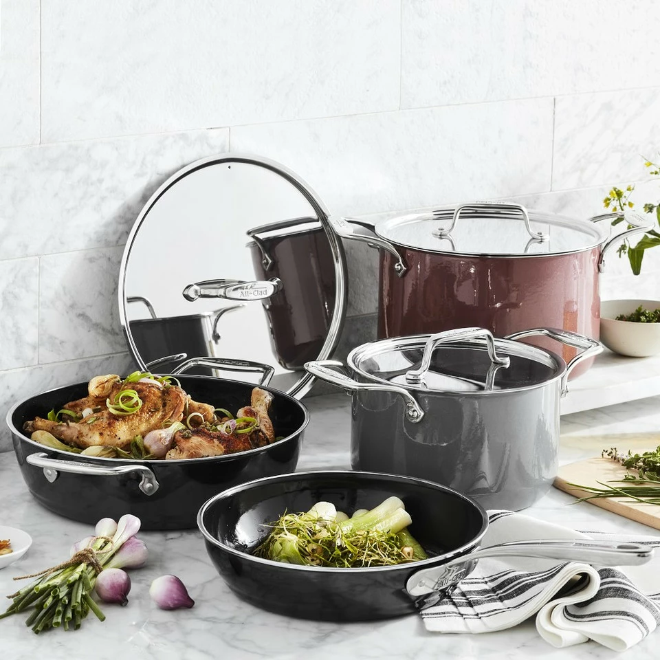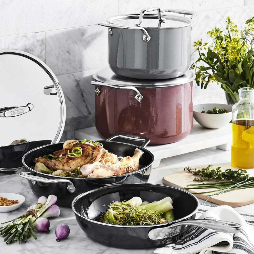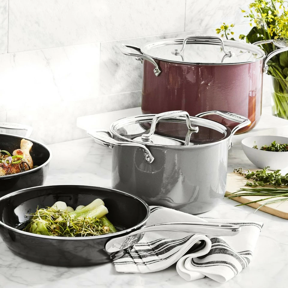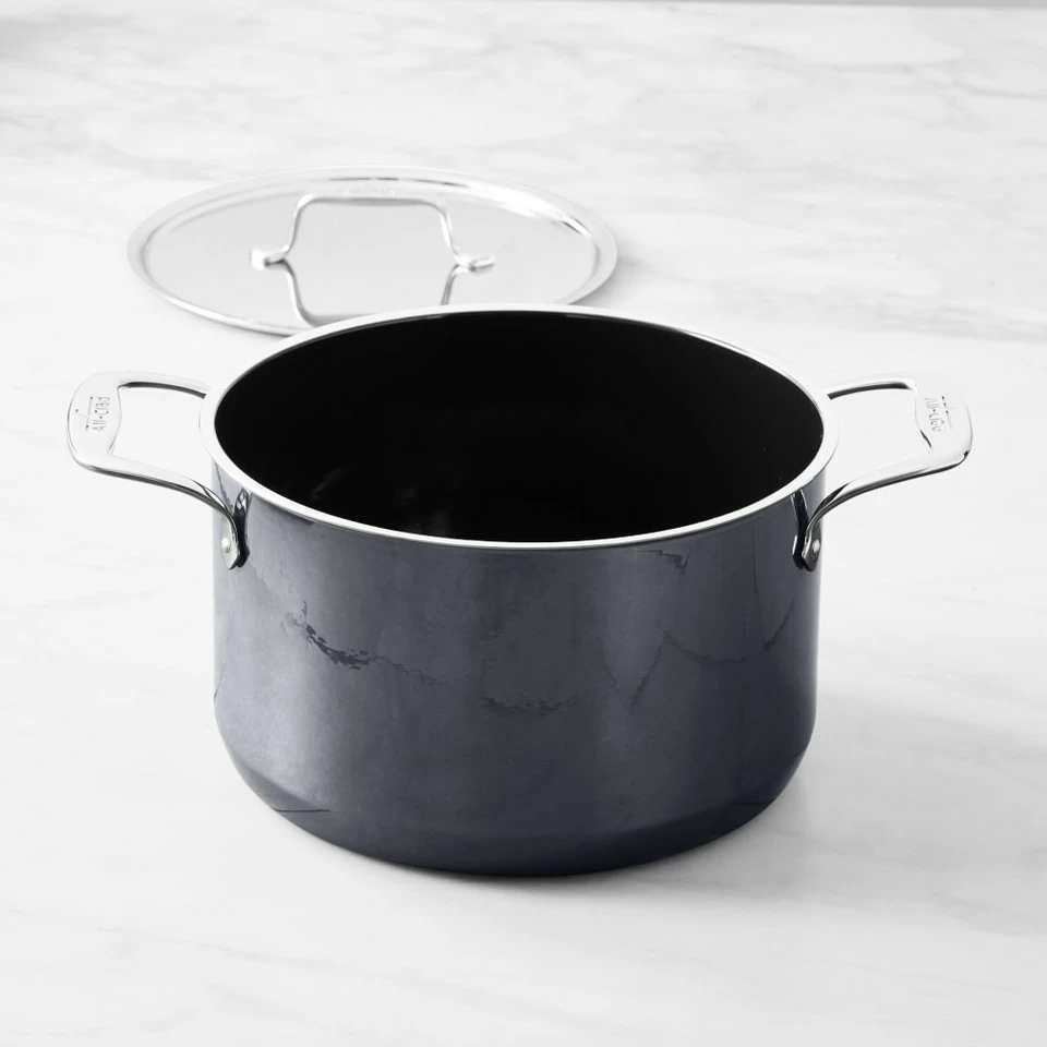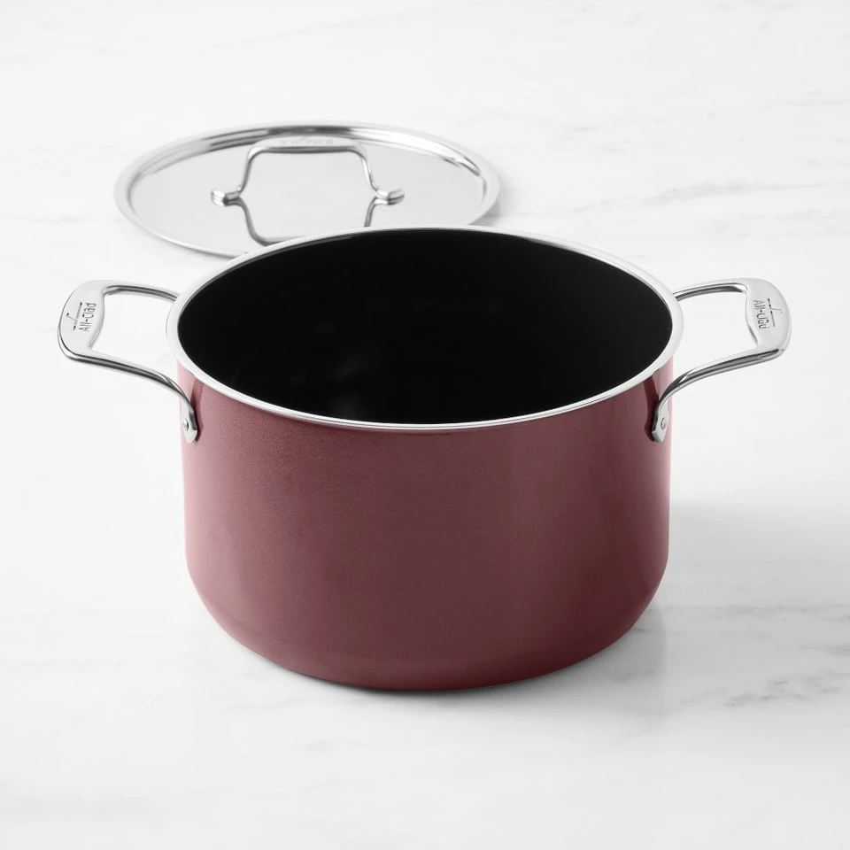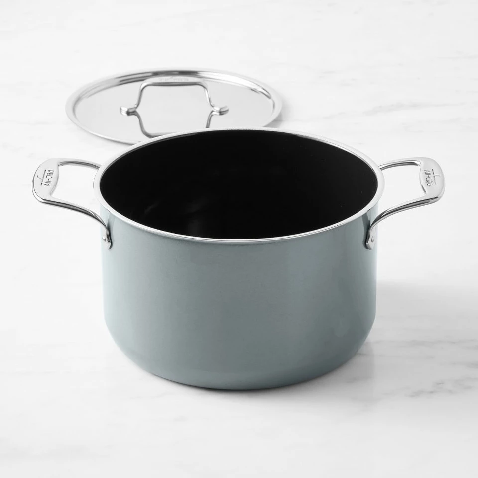 All-Clad’s Fusiontec cookware combines professional-quality construction with a brilliant finish to create the ultimate oven-to-table collection. Built with a thick steel core for even heating, each piece features an ultra-durable natural ceramic finish inside and out that’s easy to clean and resists chips and stains. This German-made stockpot has handcrafted stay-cool handles and a tight-fitting lid made of stainless steel. Use it to cook everything from soup and stew to pasta and chili.