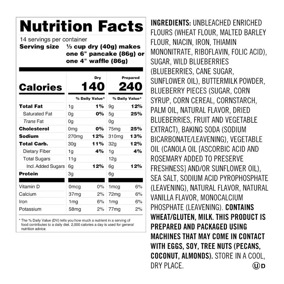 Our mix yields fluffy homemade waffles and pancakes for a memorable breakfast or brunch. Wild blueberries provide a sweet yet tangy taste and appealing texture.