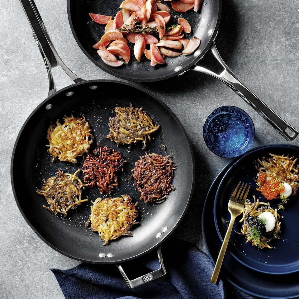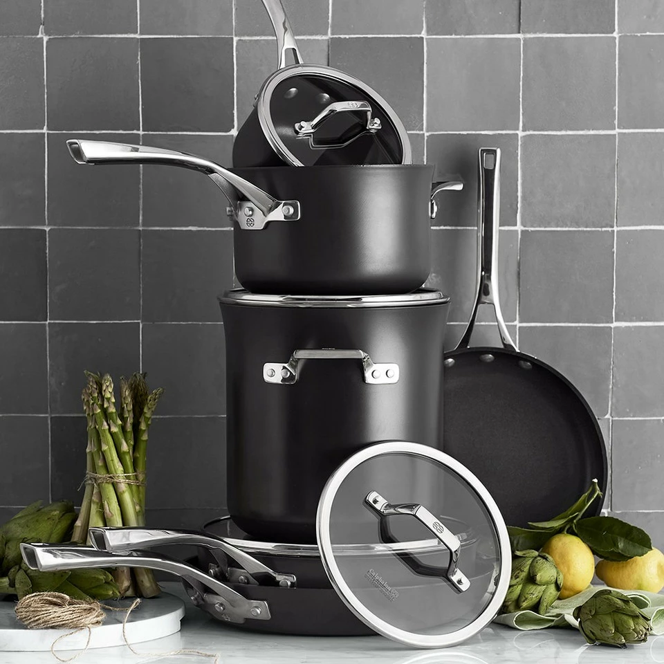 Developed through a unique collaboration between Calphalon and Williams Sonoma, the Elite cookware collection sets a new standard for nonstick performance. Metal utensils won’t damage the release performance of the durable, triple-layer nonstick interior, and the specially textured surface excels for searing foods — two key features that set this collection apart from other nonstick cookware. Made in the USA and exclusively ours, Elite cookware is also PFOA-free and dishwasher safe.
