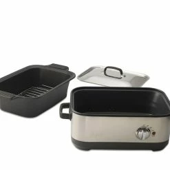 - Durable tempered glass construction is heatproof and shock resistant.