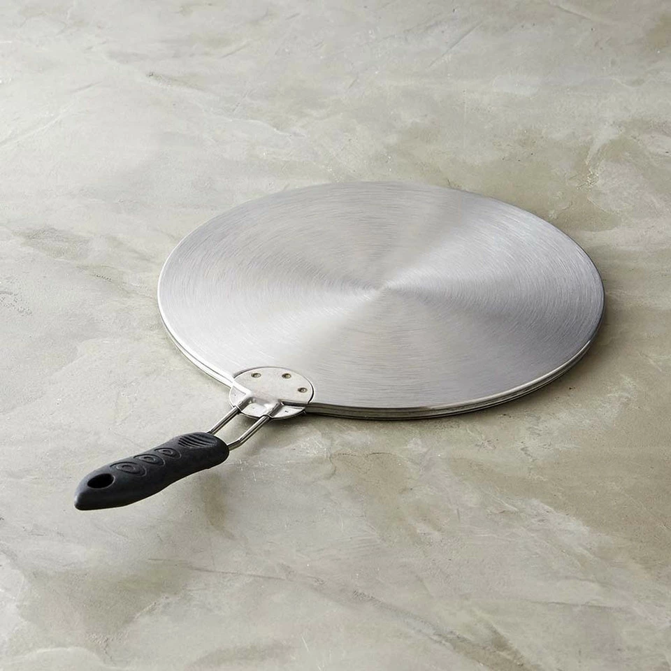 This stainless steel disk allows you to cook on a magnetic induction burner with your favourite copper or aluminum cookware. The disk sits under your non-magnetic pan and transfers heat to it steadily and evenly.