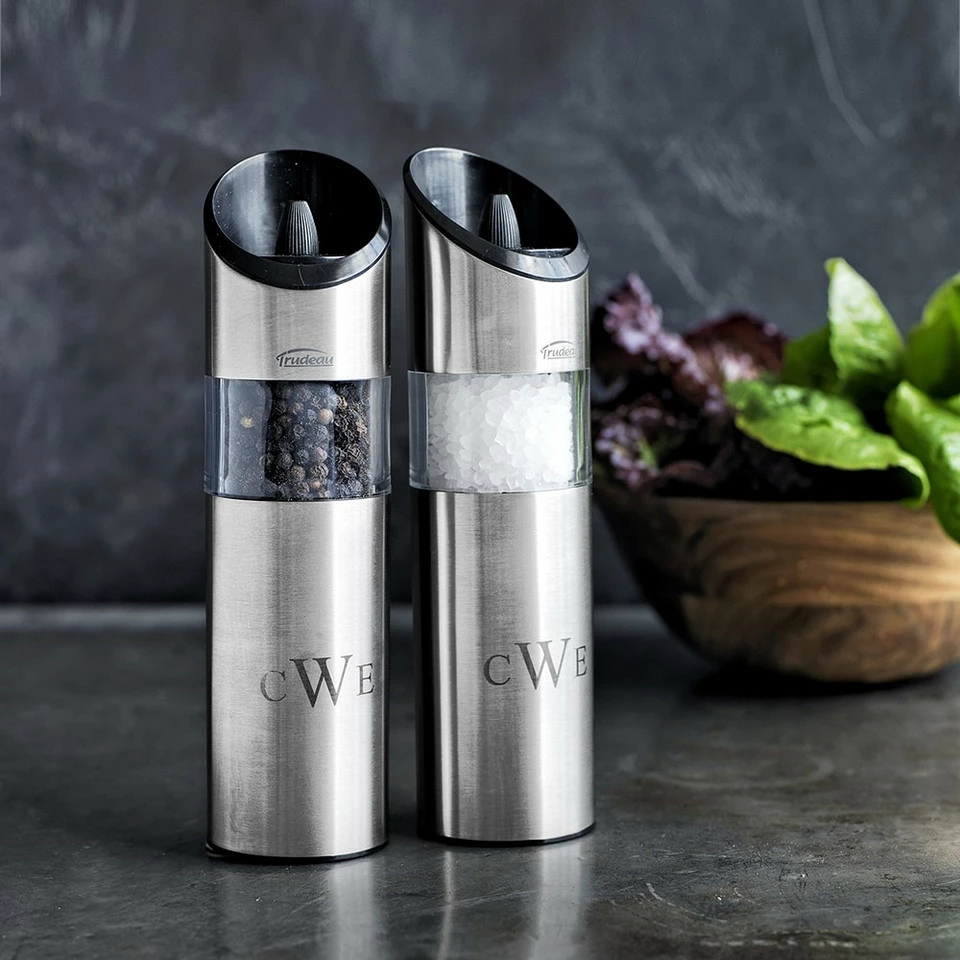- Made by Trudeau, the innovative automatic design lets you grind salt or pepper with one hand – just turn the grinder over.