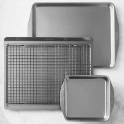 - Unique diamond-textured surface strengthens pans while increasing airflow for even baking.