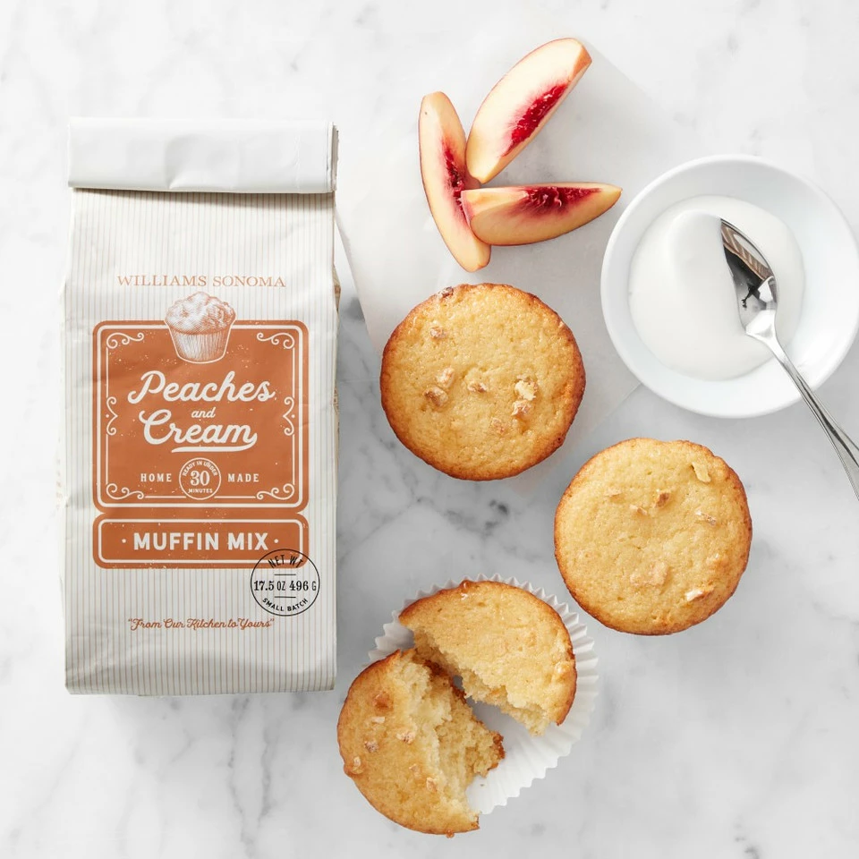 Brighten up any day with freshly baked muffins inspired by the classic summer combination of peaches and cream. Our small-batch muffin mix makes it easy with a blend of the best natural ingredients, including real peaches, light brown sugar and creamy vanilla. Prep is simple – just add butter, milk and eggs, then bake in a muffin pan. In less than an hour, you’ll be enjoying the ultimate homemade muffins. Serve them warm from the oven, spread with sweet butter or cream cheese.